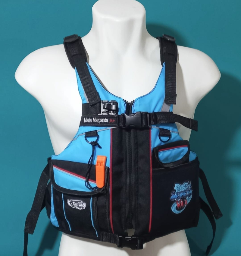 Confecção de coletes salva vidas personalizados para prática de esportes aquáticos como canoagem, stand up e canoa havaina.