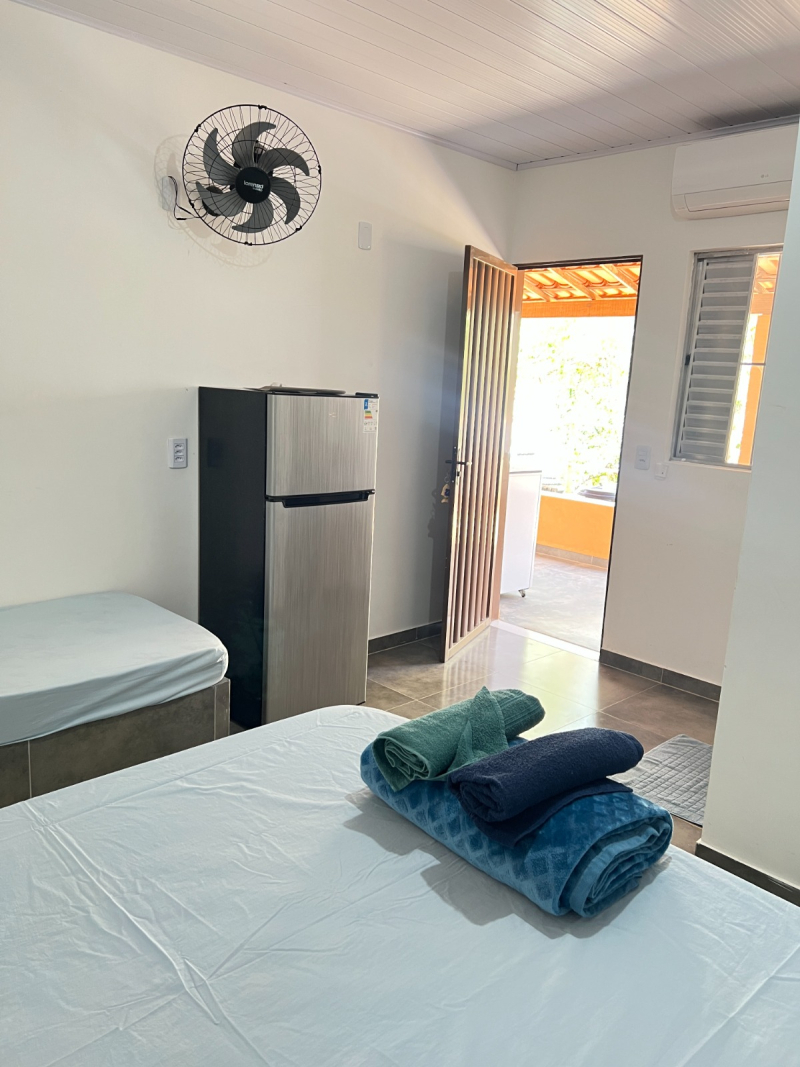 2- Quarto com (Ar condicionado, Ventilador, Frigobar, Televisão, Banheiro).
